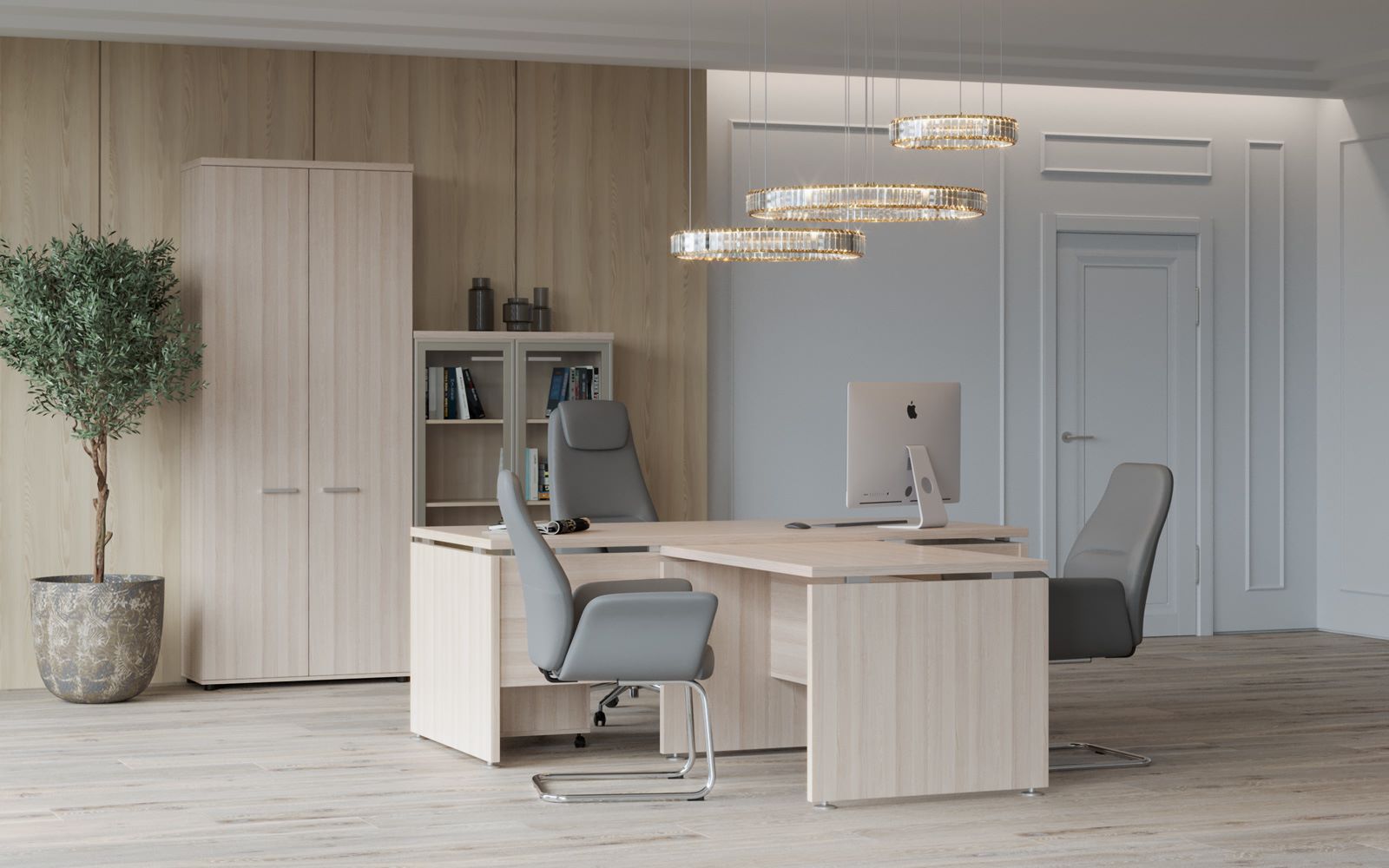 Коллекция «Grand» — идеальное сочетание строгого стиля и качественных материалов. Энергия и надежность кабинета «Grand» воплощены в массивных топах, уверенных прямых линиях и при этом «парящих» столешницах. С помощью мебели «Grand» можно составить множество вариантов офисного интерьера — от одного рабочего места в небольшом кабинете до просторного офиса с функциональными зонами: переговорной, рабочей и пространством для отдыха.