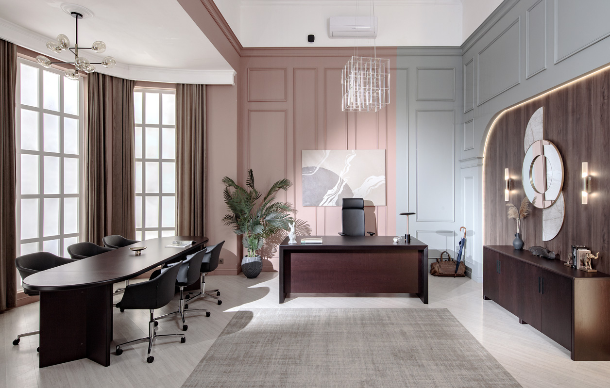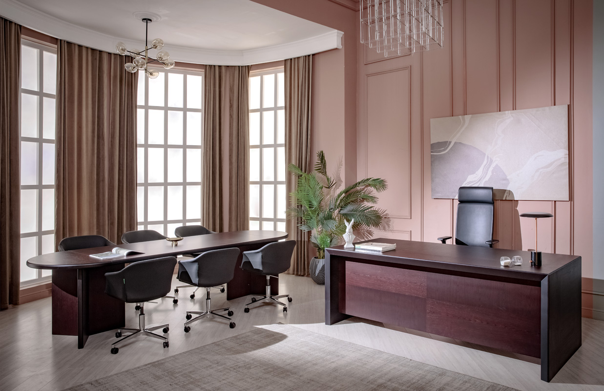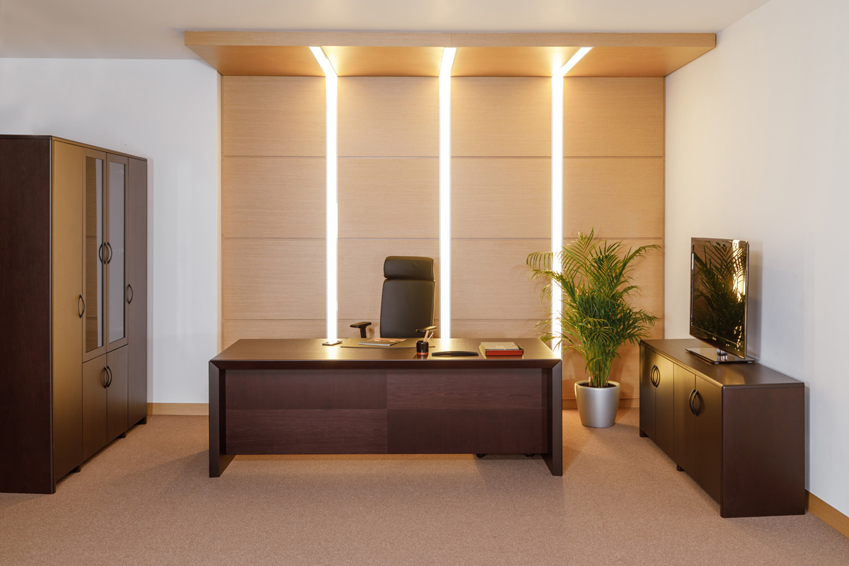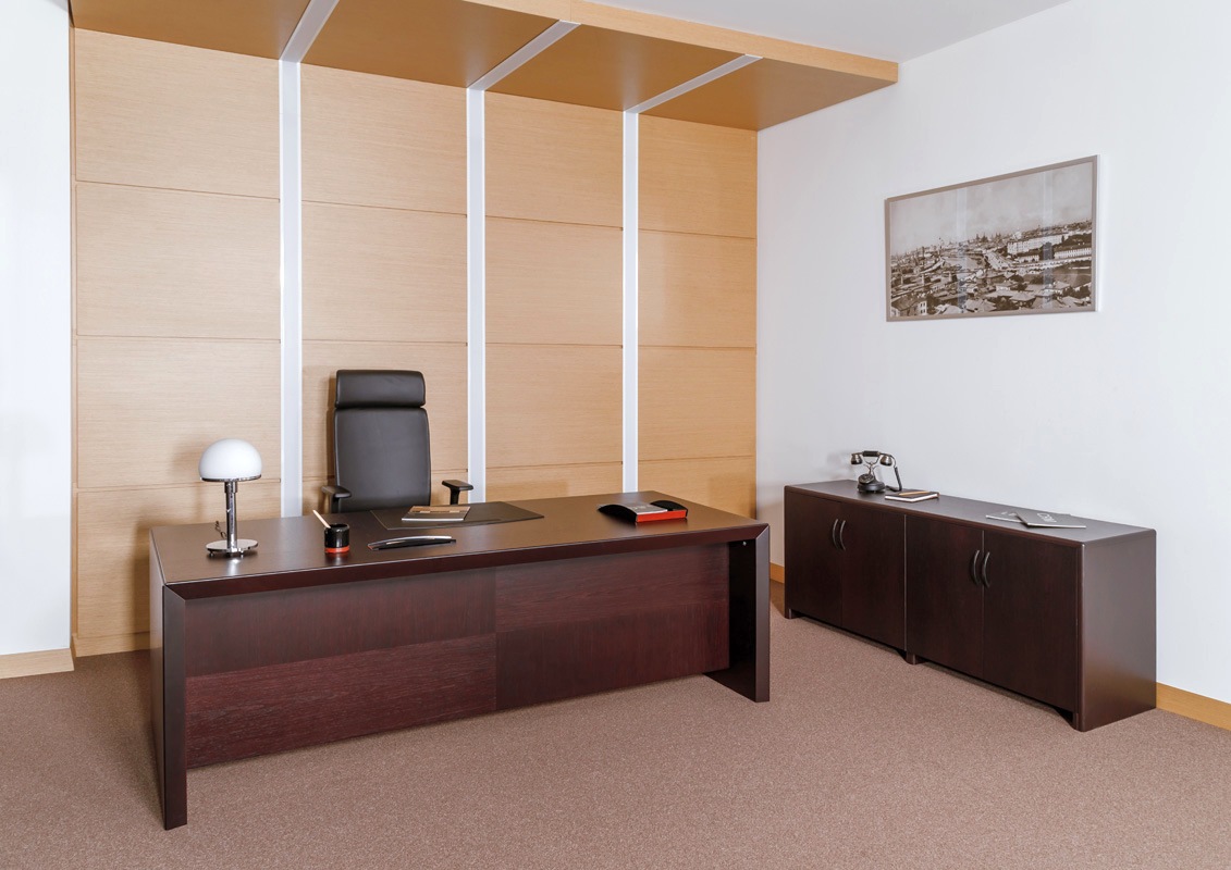 Оригинальный дизайн с соединением столешницы и боковых панелей под углом в 45° выделяет Tempio среди других кабинетов для руководителей высокого ранга. Неповторимый рисунок шпона из натуральной древесины поможет создать деловой, но в то же время уютный офис.