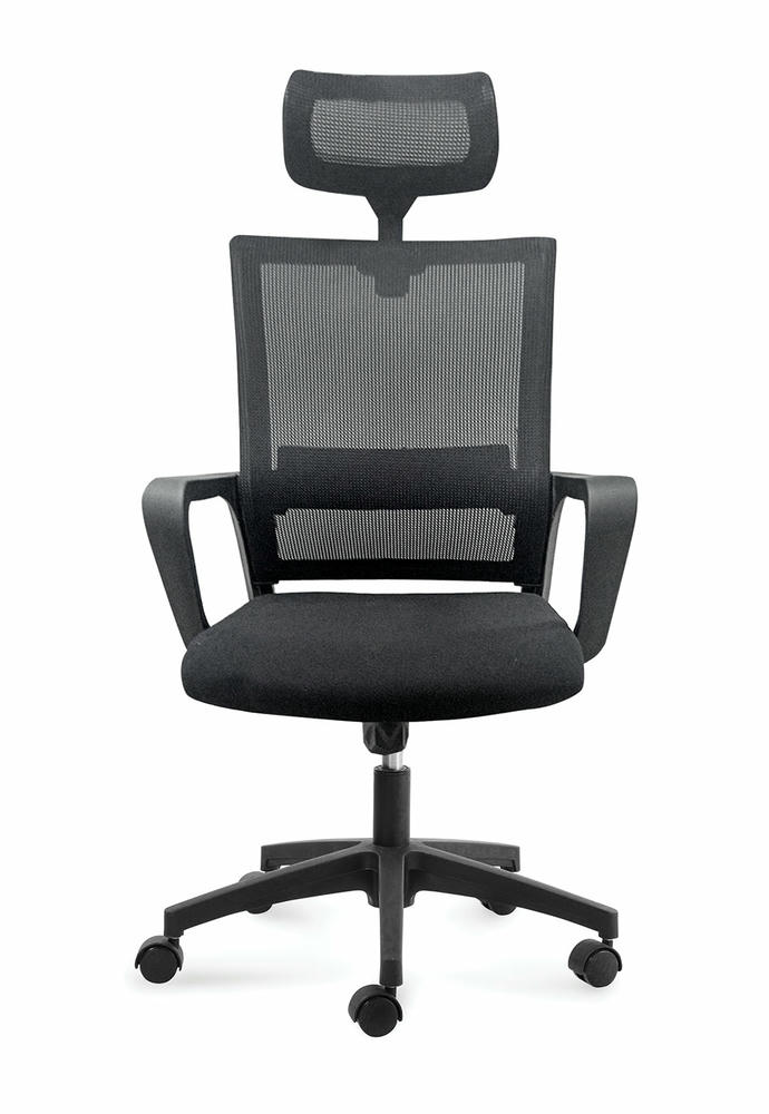 Современное недорогое эргономичное кресло для персонала. Характеризуется: - не монолитный пластиковый каркас – спинка крепится к сидушке надежным крепежем (8 болтов) - сиденье из ткани (черного цвета) повышенной износостойкости, в основании поролон плотностью 40 кг/м.куб, - широкое сиденье - спинка из акриловой сетки повышенной износостойкости - встроенный поясничный упор - механизм качания с возможностью фиксации кресла в рабочем положении, с регулировкой усилия на качание. - роликовые колеса с прорезиненными вставками (для сохранения напольных покрытий). Максимальная нагрузка 90 кг