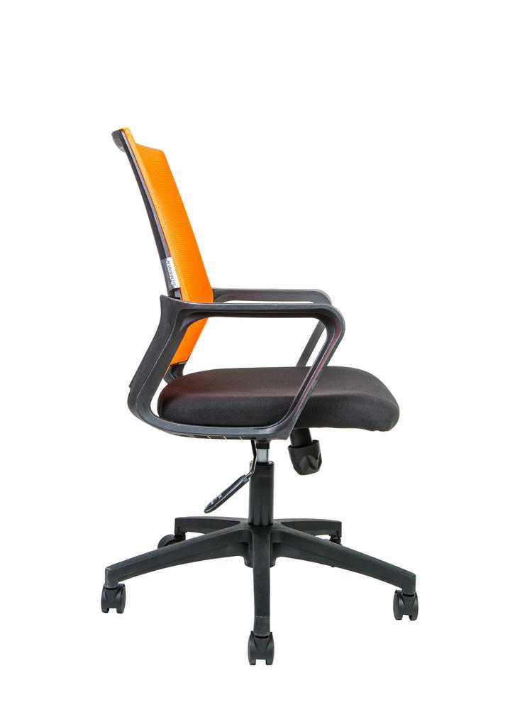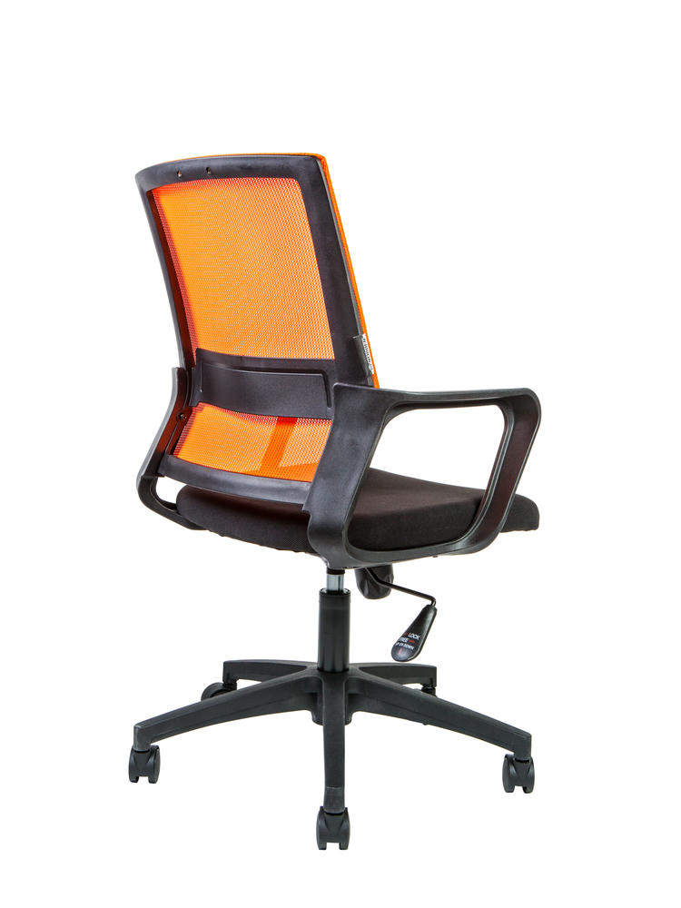 Современное недорогое эргономичное кресло для персонала. Характеризуется: - не монолитный пластиковый каркас – спинка крепится к сидушке надежным крепежем (8 болтов) - сиденье из ткани (черного цвета) повышенной износостойкости, в основании поролон плотностью 40 кг/м.куб, - широкое сиденье - спинка из акриловой сетки повышенной износостойкости - встроенный поясничный упор - механизм качания с возможностью фиксации кресла в рабочем положении, с регулировкой усилия на качание. - роликовые колеса с прорезиненными вставками (для сохранения напольных покрытий). Максимальная нагрузка 90 кг