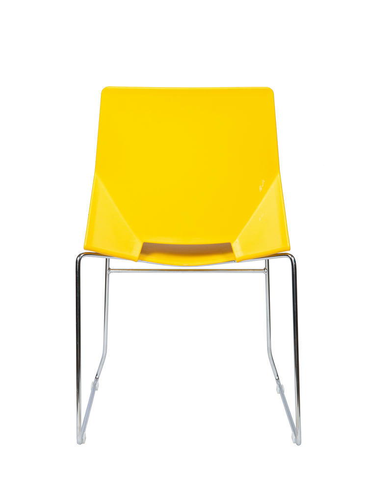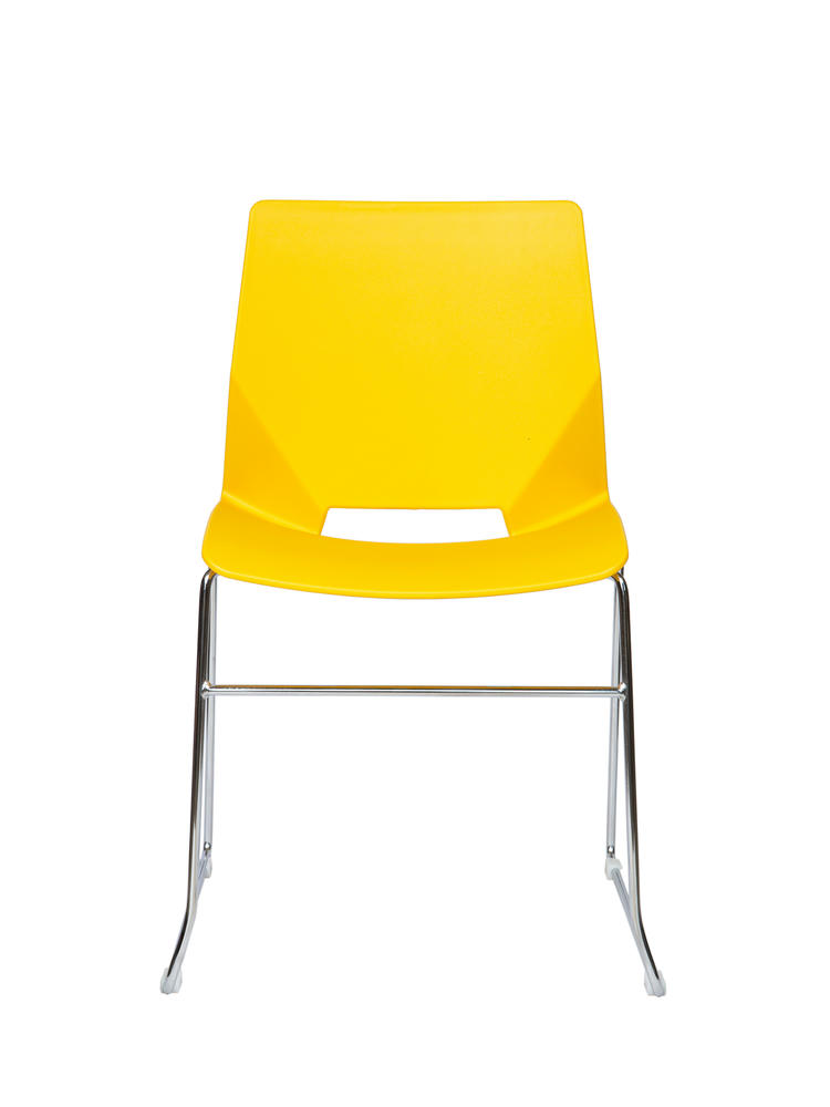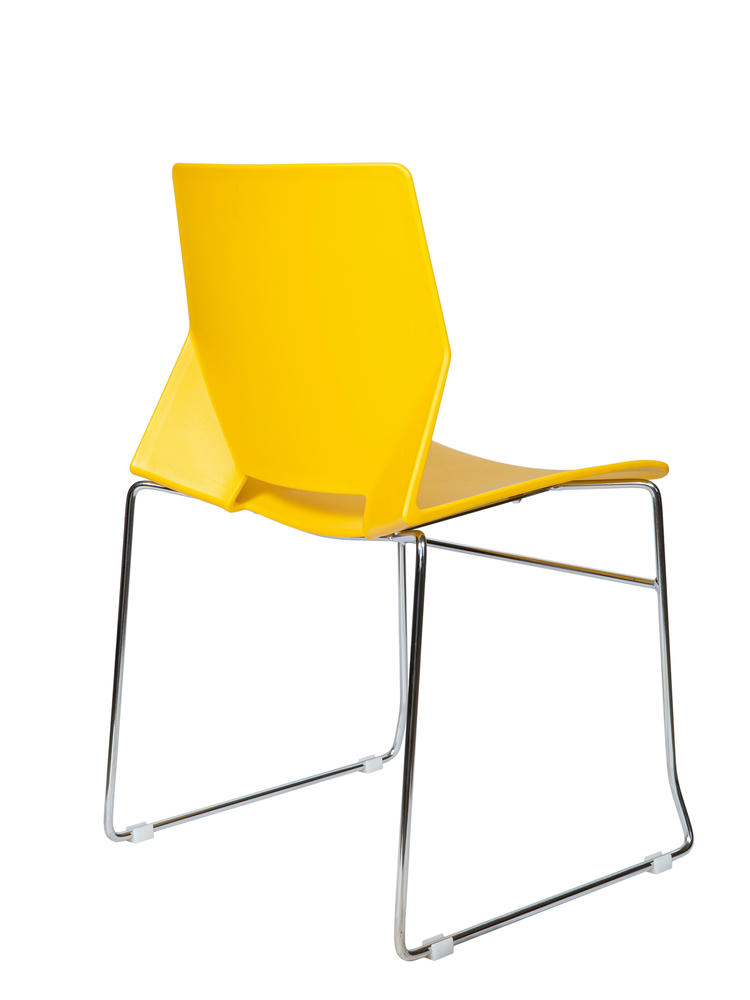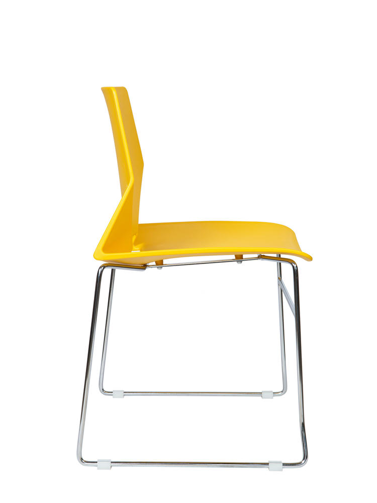 Современный офисный стул для учебных помещений и зон ожиданий. Пластик. Цвет желтый. Основание металл, хром. Стул выдерживает нагрузку до 90 кг. Гарантия год