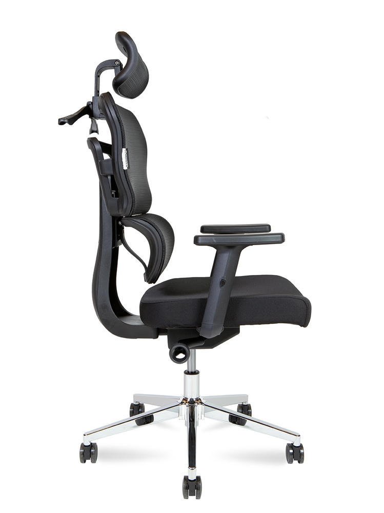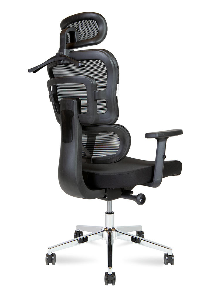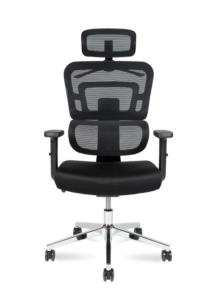 1. Офисное кресло с регулируемым по высоте и углу подголовником 2. Спинка с высокоэластичной сеткой, регулировка по высоте. 3. Сиденье ткань с наполнение ПУ высокой плотности 4. Регулируемый по высоте подлокотник из ПУ 5. Асинхронный механизм с фиксацией в трех положениях. 6. Хромированная база R350 мм 7. Нейлоновые ролики 8. Стандарт БИФМА