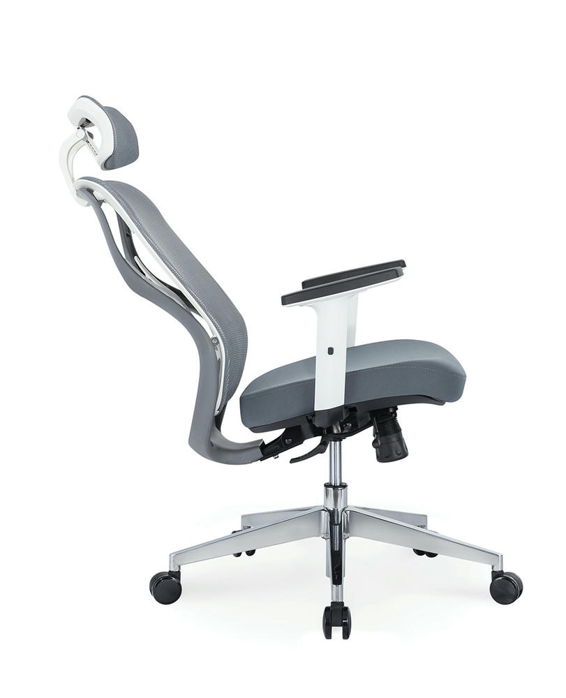 Суперсовременное офисное кресло, выполненное с учетом новейших дизайнерских тенденций. Анатомический дизайн спинки и поясничного упора. Обивка спинки выполнена из высокопрочной сетки, что позволяет спине дышать. Сиденье обито тканью высокого качества с наполнителем memory foam. Регулируемый подголовник. Регулируемые Т-образные подлокотники с мягкой накладкой. Механизм качания - мультиблок с возможностью фиксации в любом положении. Слайдер. Крестовина - высокопрочный пластик. Бесшумные прорезиненные ролики. Максимальная нагрузка 120 кг