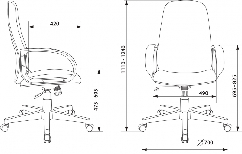 Ширина сиденья 490