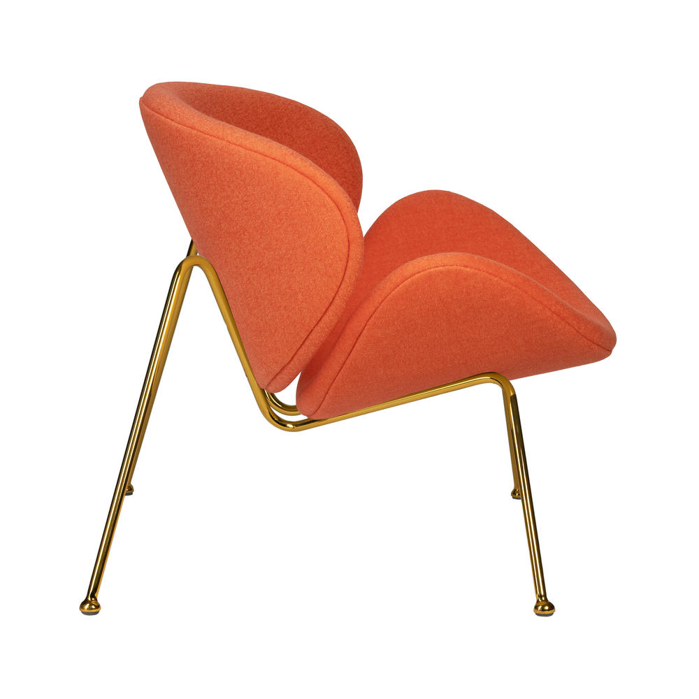 Кресло дизайнерское EMILY, оранжевая ткань AF, золотое основание