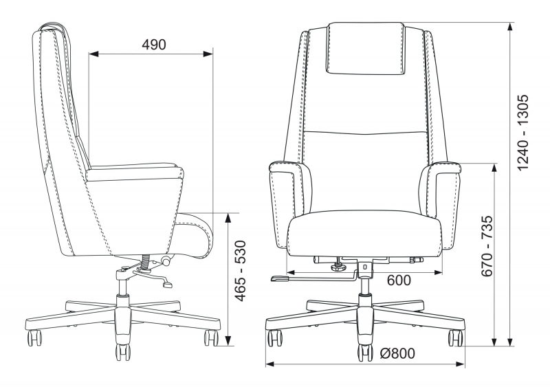 Глубина сиденья 490