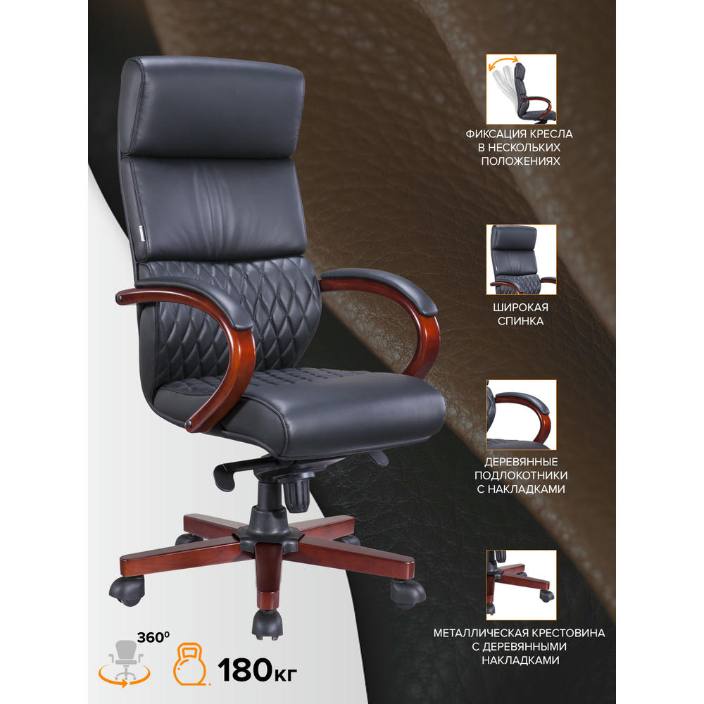 Артикул: Кресло руководителя Everprof President Wood Кожаный Черный