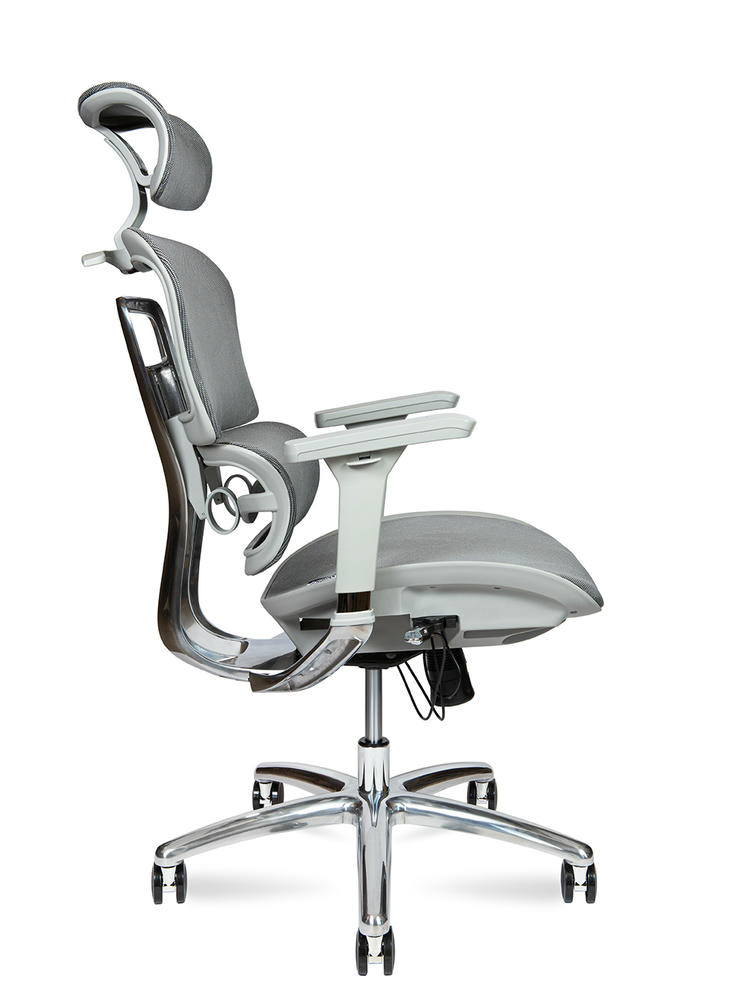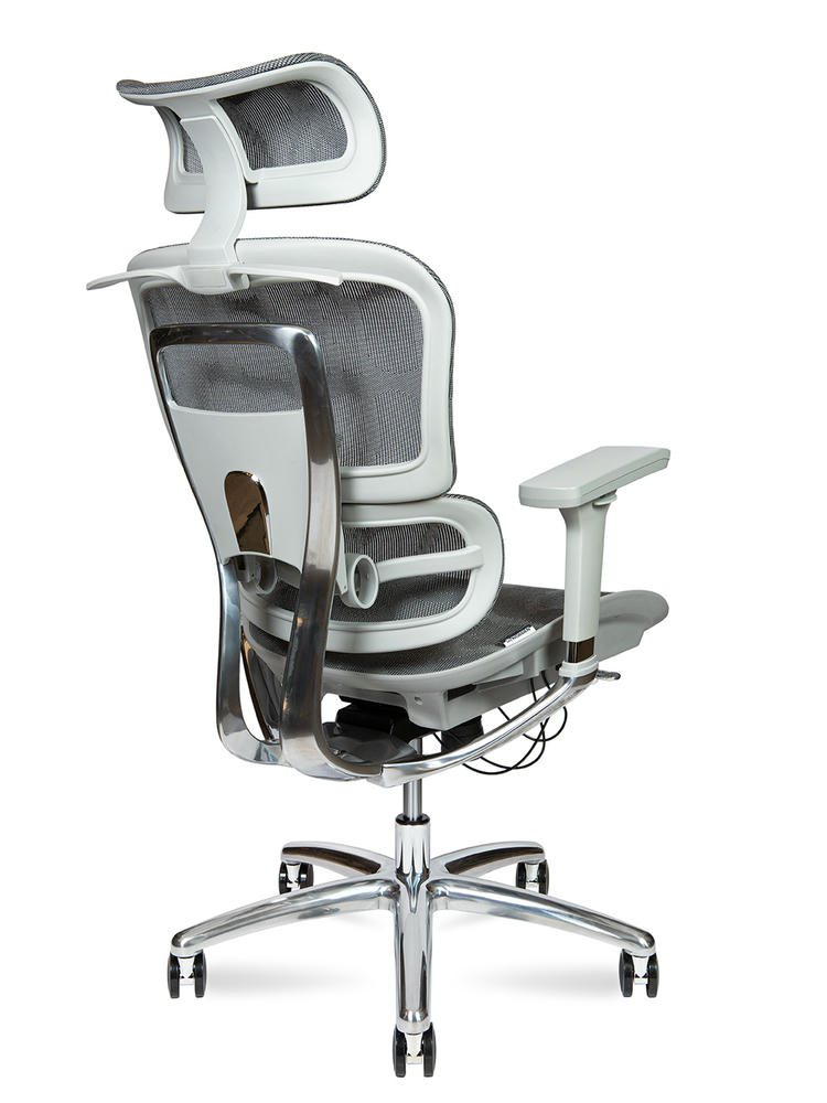 Ультрасовременное эргономичное офисное кресло с высокой спинкой. Регулировка высоты и угла подголовника. Многофункциональный механизм с полупроводниковым управлением. Асинхронный механизм качания позволяет изменять углы наклона спинки и сидения независимо друг от друга. Регулировка высоты сиденья делает кресло максимально удобным под разный рост. Хромированный алюминиевый задний кронштейн с регулировкой высоты спинки указывает на статус и качество материалов исполнения. Поясничная поддержка. 3D подлокотники регулируются по высоте, поворачиваются влево и вправо, двигаются вперед и назад. Огнеупорная и антиплесневая сетка для подголовника, спинки и сиденья. Максимальная нагрузка 130 кг. Гарантия 1 год