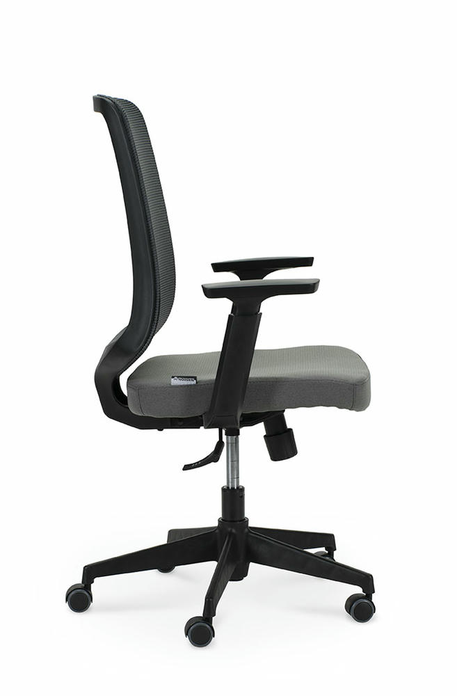 Ультрамодный «итальянский» дизайн. Пластиковая крестовина с усиленными ребрами жесткости. Подлокотники пластиковые с регулировкой по высоте. Спинка - прочная сетка, cиденье - ткань черного цвета. Механизм регулировки : топ-ган, прорезиненные ролики. Асинхронный механизм качания с фиксацией в двух положениях..Максимальная нагрузка 120 кг