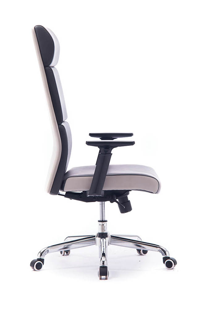 Двухцветная отделка высококачественной экокожей. В серии есть два типа директорских кресел, операторское кресло и конференц-кресло на полозьях. Регулируемые по высоте Т-образные подлокотники, крестовина - хромированная сталь. Высокое качество материалов и исполнения. Механизм качания мультиблок, выдерживающий нагрузку до 150 кг, с фиксацией наклона в любом положении