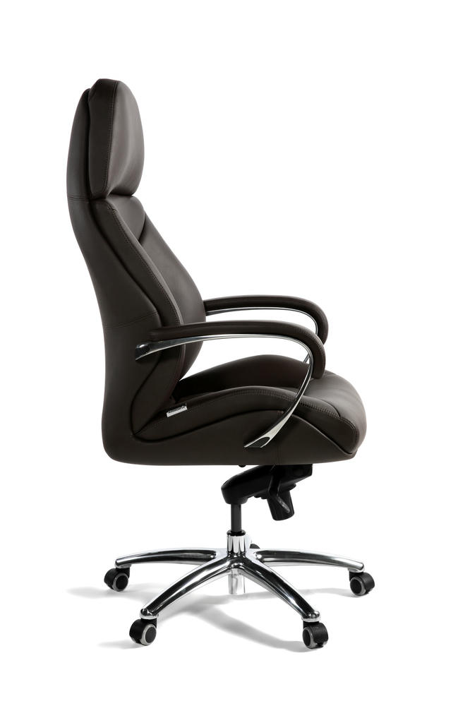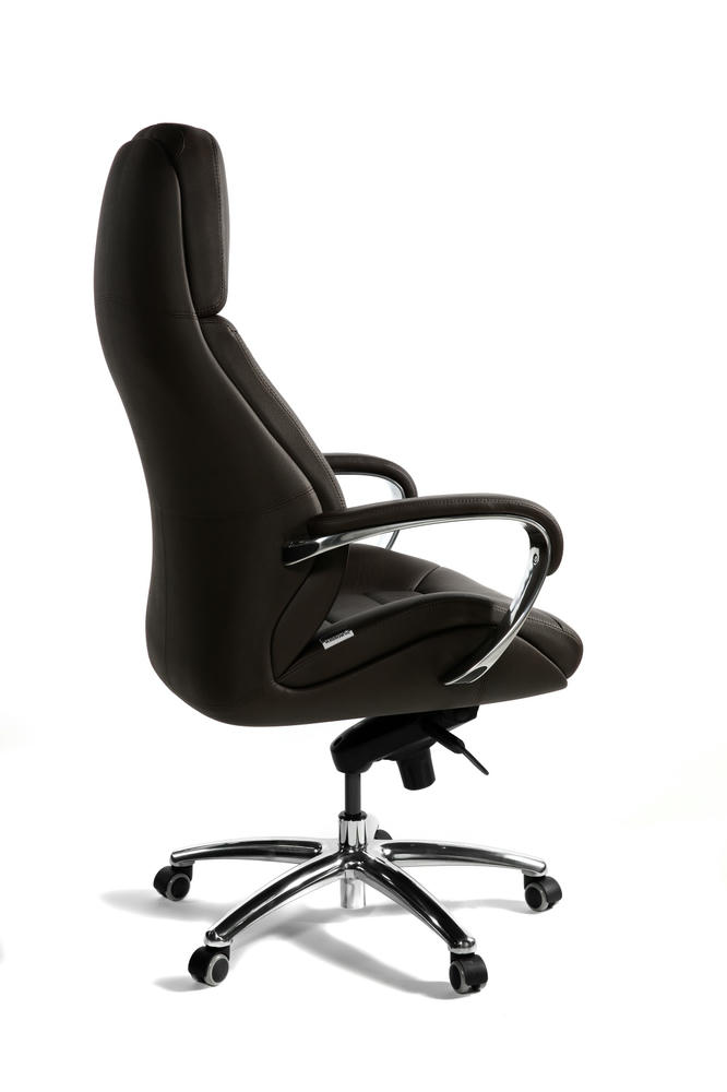 Кресло руководителя First класса. Превосходное сочетание элегантности, комфорта и функциональности. Изготовлено из натуральной кожи, а спинка и нижняя часть сиденья отделаны экокожей. Сиденье и спинка кресла изготовлены из формованного PPU, обеспечивая дополнительный комфорт. Современный механизм качания с возможностью фиксации в любом положении, а также регулировка высоты и жесткости качания для индивидуальной настройки. Подлокотники выполнены из полированного алюминия с мягкими накладками из натуральной кожи. Крестовина также выполнена из полированного алюминия, а колеса изготовлены из PU. Кресло сертифицировано по стандарту BIFMA. Максимальная нагрузка 130 кг. Гарантия один год