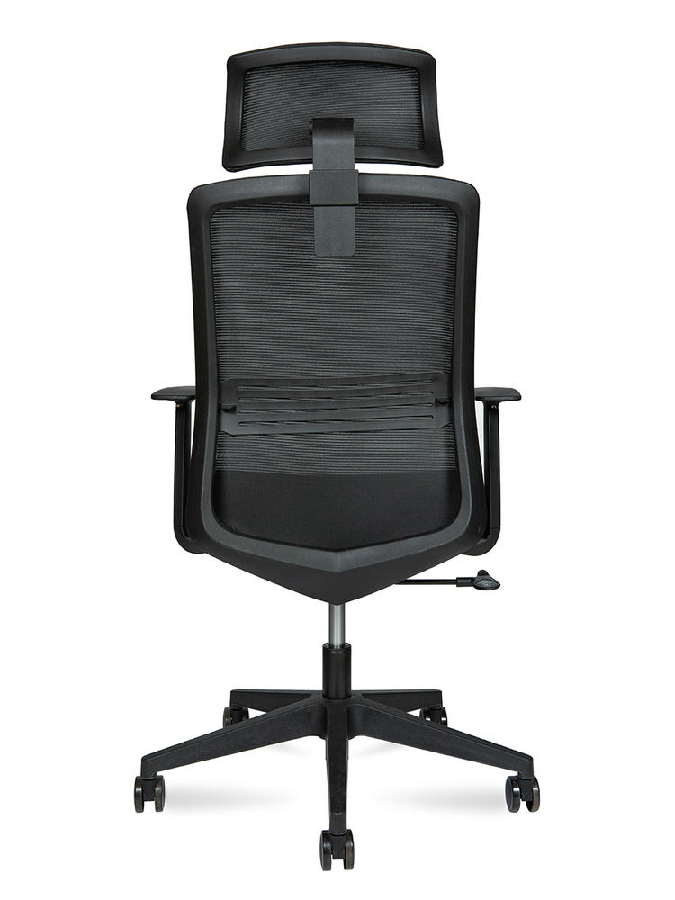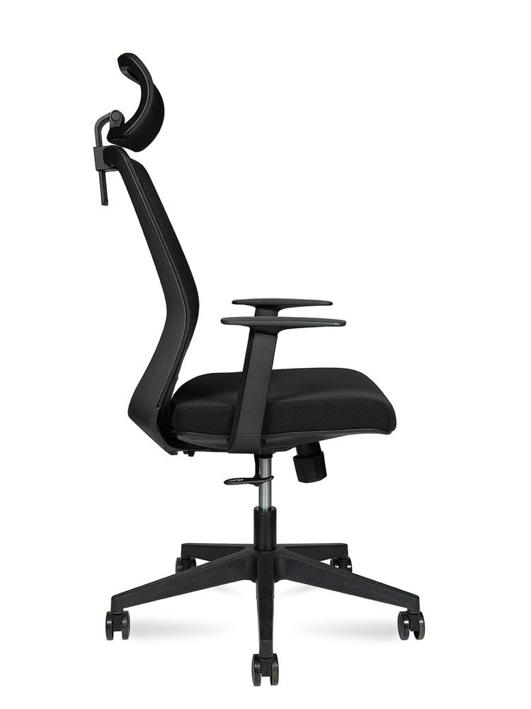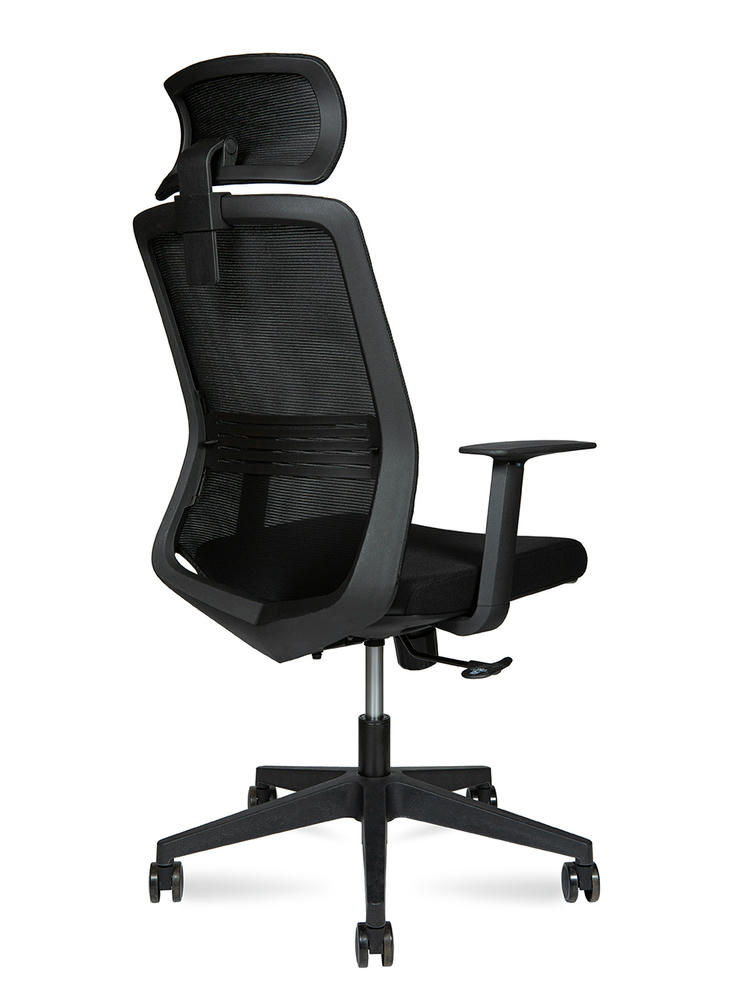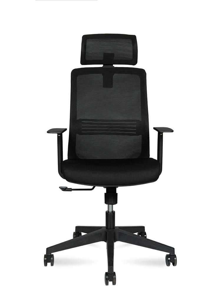 "·Каркас: черный с регулируемой поясничной опорой ·Подлокотники: нерегулируемые ·Наполнение сиденья: ФППУ ·Механизм качения: с фиксацией в рабочем положении ·Газлифт: 3-класса, ·Крестовина: из нейлона ·Ролики: из PU, черные"