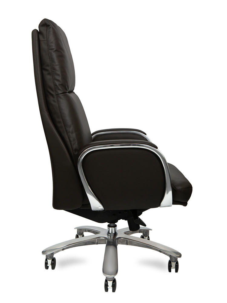 Кресло для руководителя Сенат можно смело считать одним из самых респектабельных на рынке офисной мебели. У данной модели есть отличительная особенность – это подголовник, который принимает удобную форму за счет наполнения натуральным пером, также стоит обратить внимание на крестовину и подлокотники, которые выполнены из полированного алюминия. У кресла синхромеханизм качания (при отклонении спинки назад сиденье также отклоняется в пропорции 1 к 3) мультиблок с фиксацией спинки в нескольких положениях, обивка – натуральная кожа (рабочая поверхность) коричневого цвета высшего качества. Кресло Senate YS1815A-brown будет великолепным подарком руководителю высшего звена и подчеркнёт его высокий статус