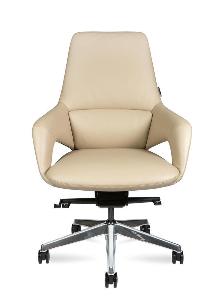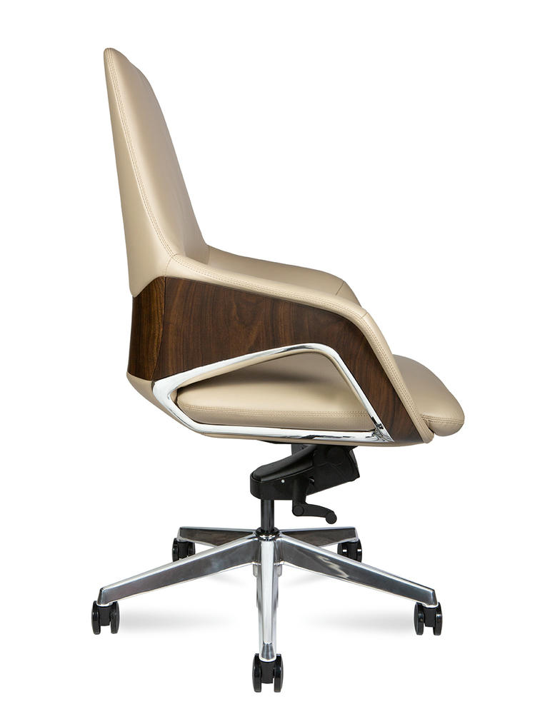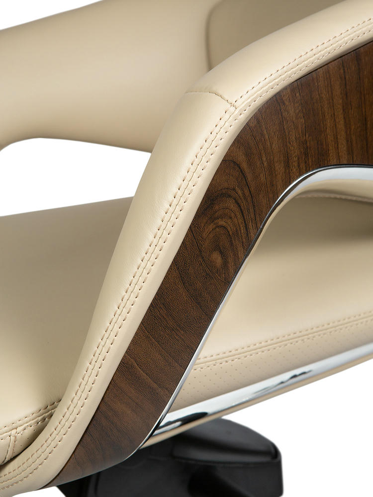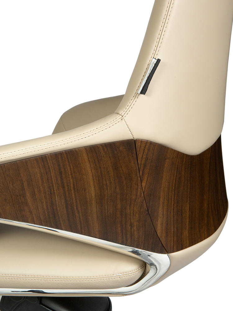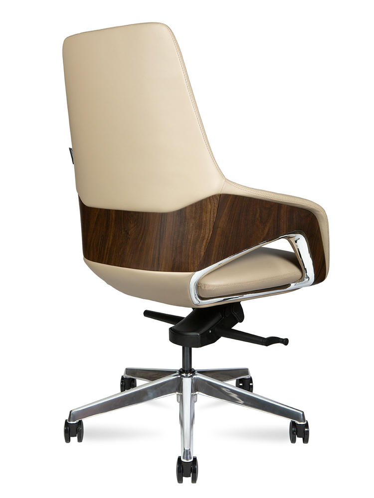 Офисное кресло для руководителя First class. Задняя часть отделана высококачественным пластиком под натуральный шпон. Нижняя часть спинки со вставками из полированного алюминия. Кресло оснащено механизмом качания мультиблок с возможностью фиксации спинки в нескольких положениях, обивка – натуральная кожа (рабочая поверхность). Отдельное внимание стоит обратить на элегантную ручку с левой стороны под сиденьем, которая регулирует жесткость качания. Кресло сертифицировано по стандарту BIFMA. Максимальная нагрузка до 120 кг. Гарантия 5 лет