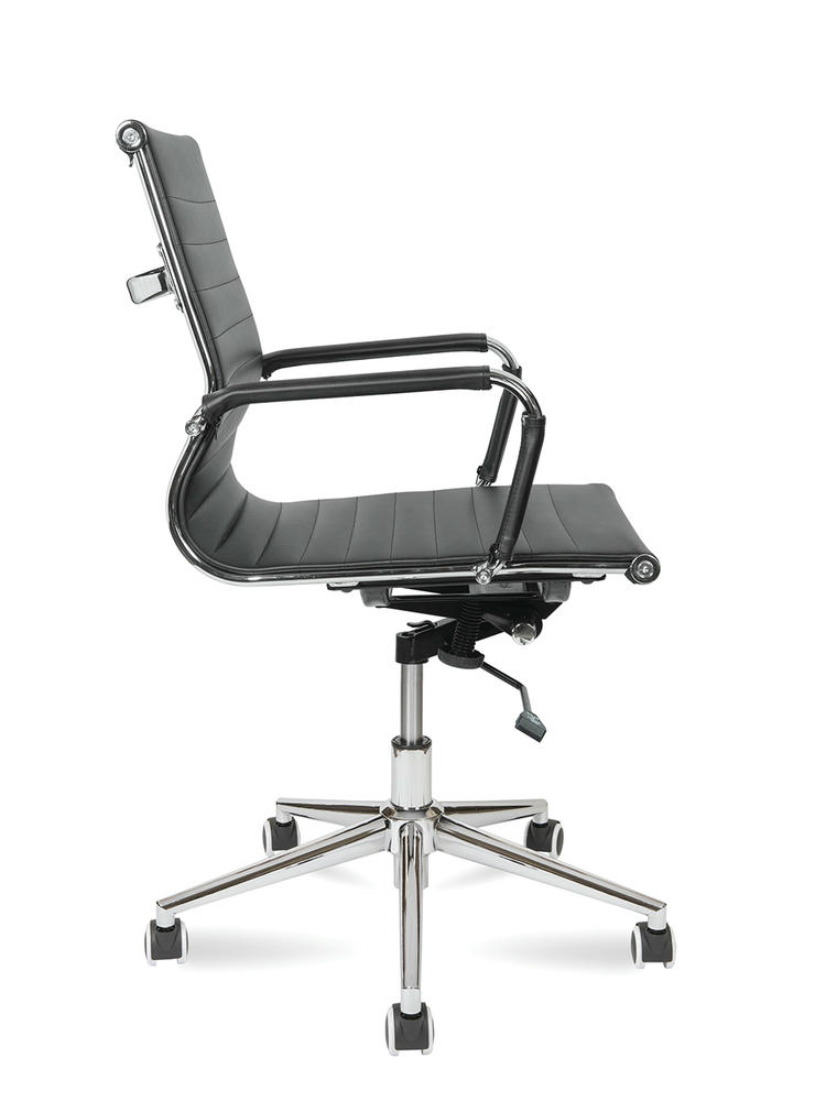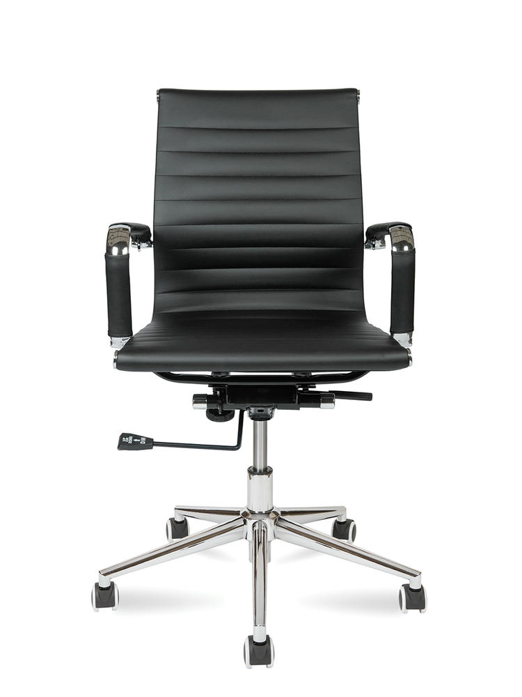 Офисное кресло Техно является одним из наиболее выразительных примеров современного дизайна. Если вы хотите придать вашему офису или домашнему рабочему месту больше стиля и респектабельности, то Техно будет оптимальным выбором. Его отличительные особенности включают высокопрочную экокожу, хромированные металлические подлокотники с съемными накладками и надежную крестовину из полированного алюминия. Кресло оснащено механизмом качания с возможностью фиксации в рабочем положении, что помогает снять нагрузку с позвоночника и занять максимально удобную позу как при работе, так и во время отдыха. Дизайн крестовины с хромированными лучами переменного сечения, сужающимися к концам, придает креслу утонченный и оригинальный вид. Подлокотники защищены съемными чехлами на молниях. Максимальная нагрузка составляет 120 кг