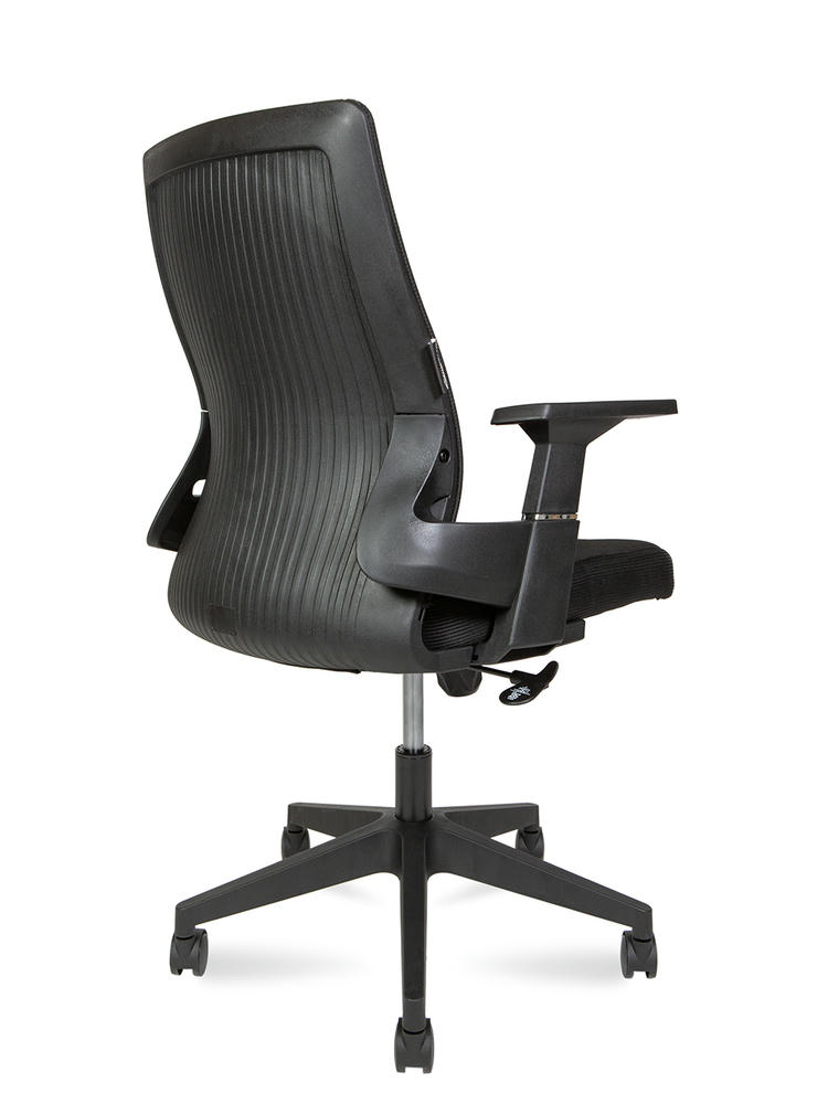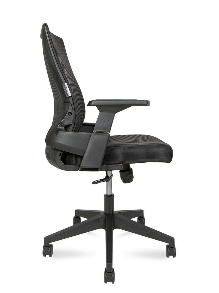 Офисное кресло, спинка низкая, задняя часть спинки закрыта пластиком черного цвета. Сиденье с PPU, покрытие сетка высокой элластичности, снизу закрыто пластиком. Прочный подлокотник 1 D, нового дизайна, с хромированной отделкой. Механизм топ ган с фиксацией в рабочем положении. Газ лифт 10 см. Bifma Нейлоновая крестовина Нагрузка 120 кг Гарантия год