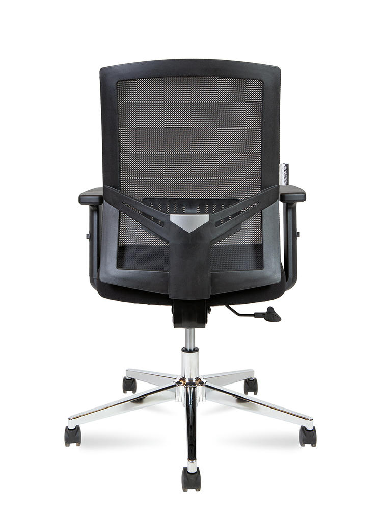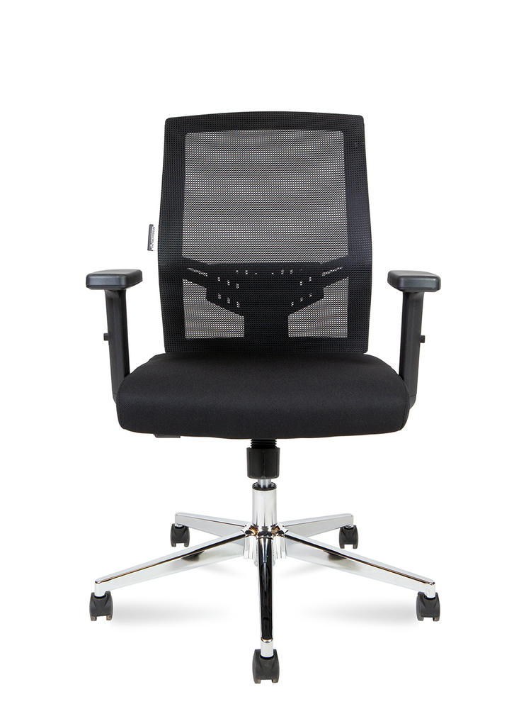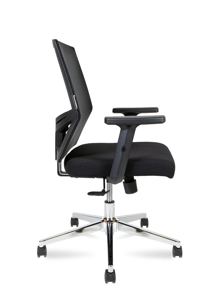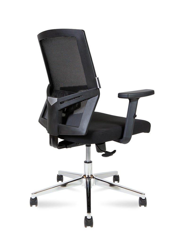 Кресло для офиса, эргономичное, черный пластик, спинка сетка, поясничный упор. Сиденье ткань, механизм Топ-Ган с фиксацией в одном положении. Крестовина хром. Нагрузка 120 кг. Гарантия год