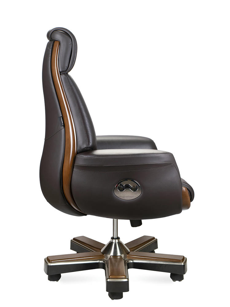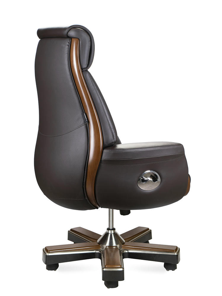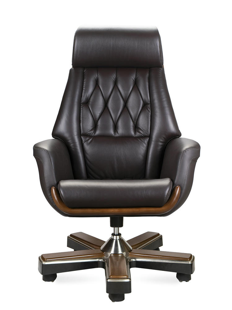 Классическое кресло, украшенное простежкой в стиле «каретной стяжки», изготовлено из кожи наивысшего качества. Следуя лучшим традициям классики, его дополняют широкие подлокотники, а элегантные вставки из качественного пластика, имитирующего натуральное дерево, гармонично интегрированы в корпус кресла. Лаконичный и современный дизайн кресла подчеркивает статус его владельца. Кресло оборудовано синхронным механизмом, позволяющим фиксировать наклон в любом положении. Кресло «Трон» идеально дополнит рабочее пространство или домашний интерьер кабиа. Нагрузка 120 кг. Гарантия один год