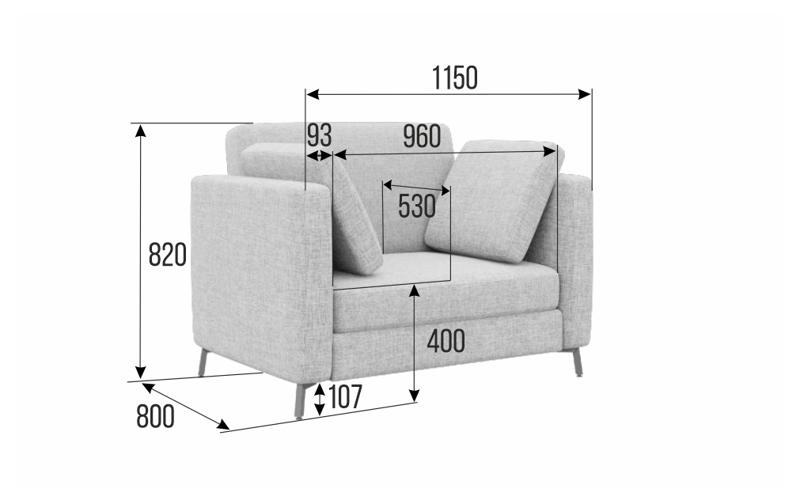 Brasco Диван одноместный BRS-1 Ness 010/Металл Черный 1150*800*840
