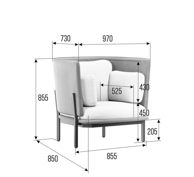 Stato Диван одноместный с низкой спинкой STA-01L Сан 08/Сан 13/Металл Черный 970*850*855