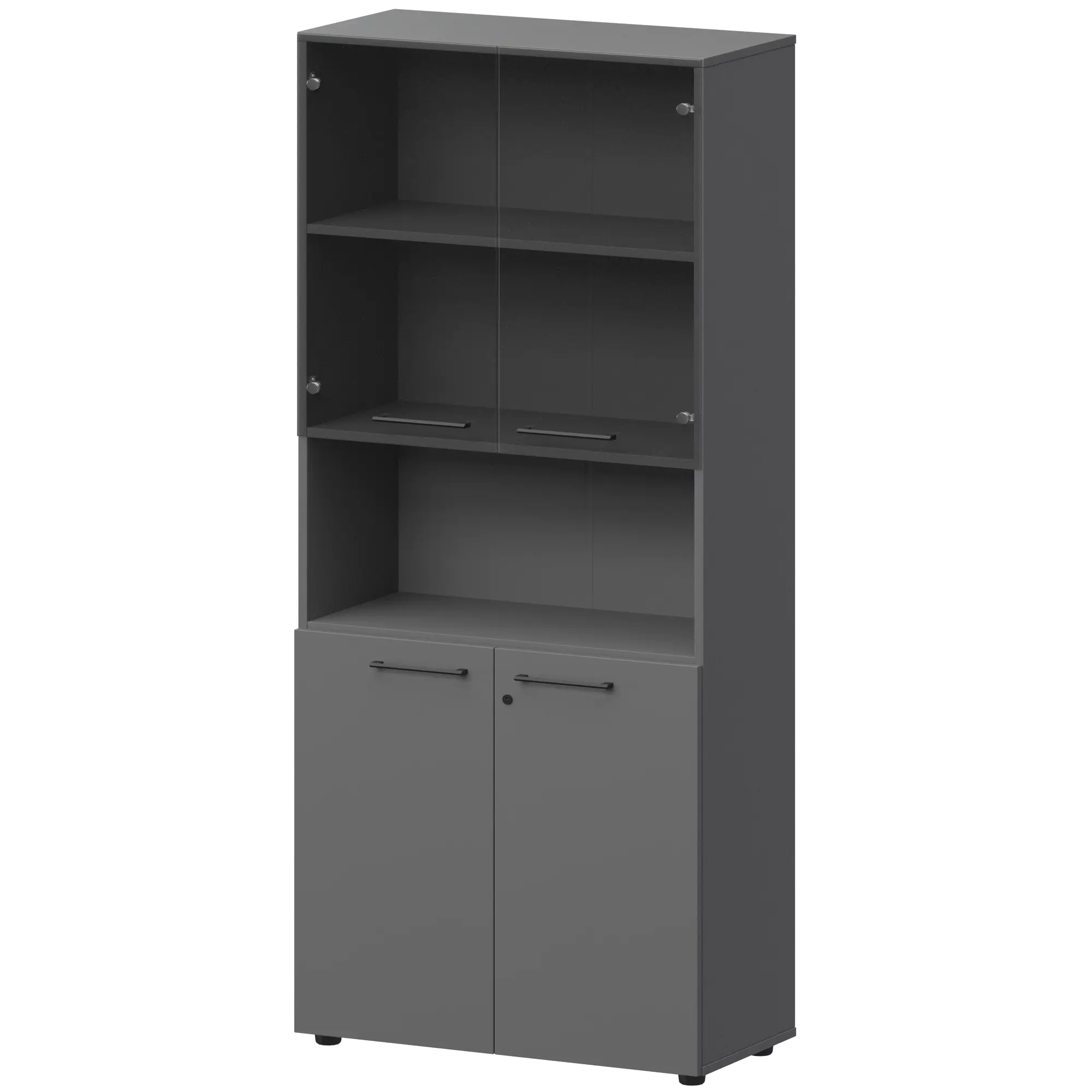 Шкаф высокий полузакрытый с стеклом СМШ58.28F.28S(Ч) Графит 792x380x1990 Кортез