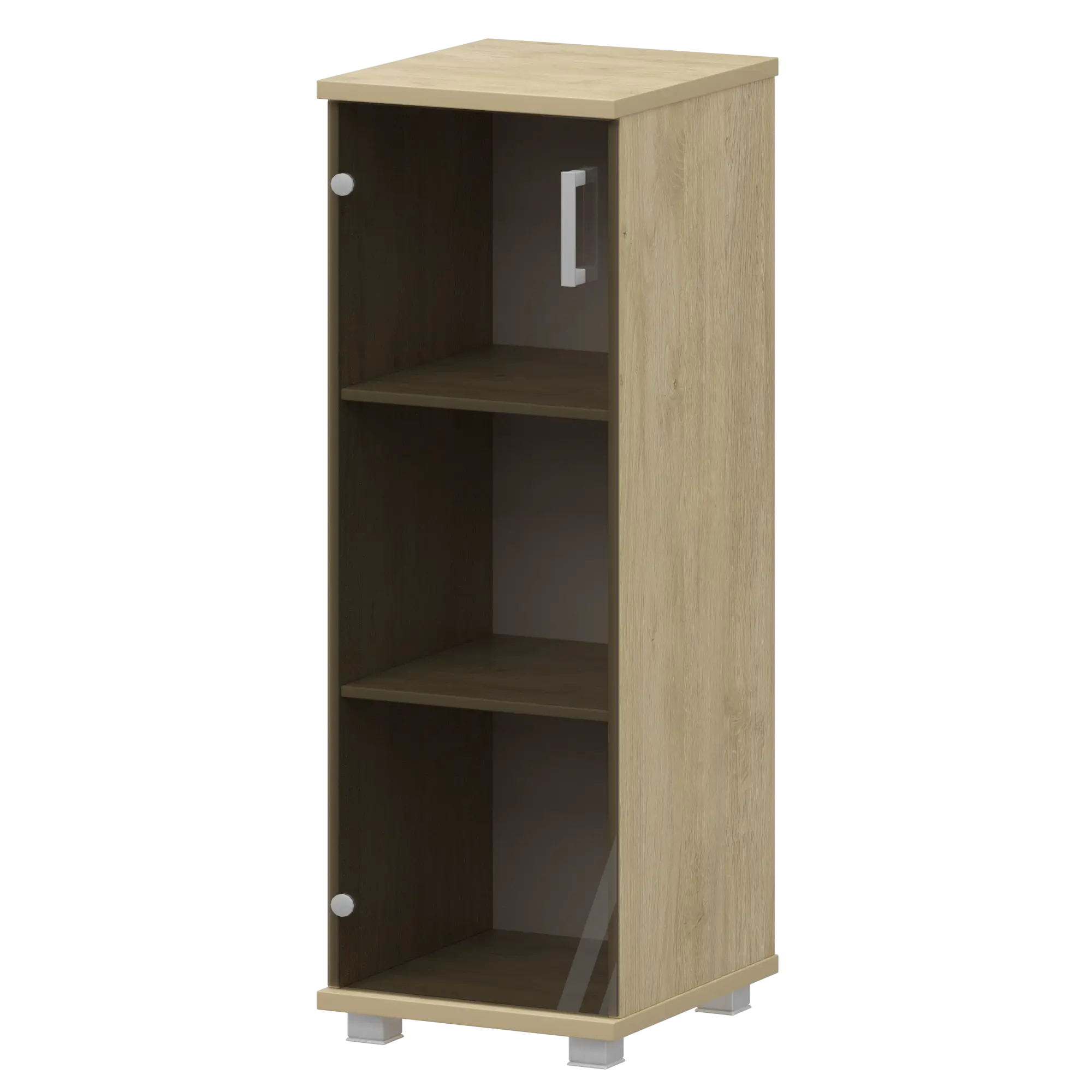 Стеллаж низкий узкий закрытый со стеклянным фасадом "НТ-440;НТ-601стл" Баттл Рок 400x445x1280 Аргентум