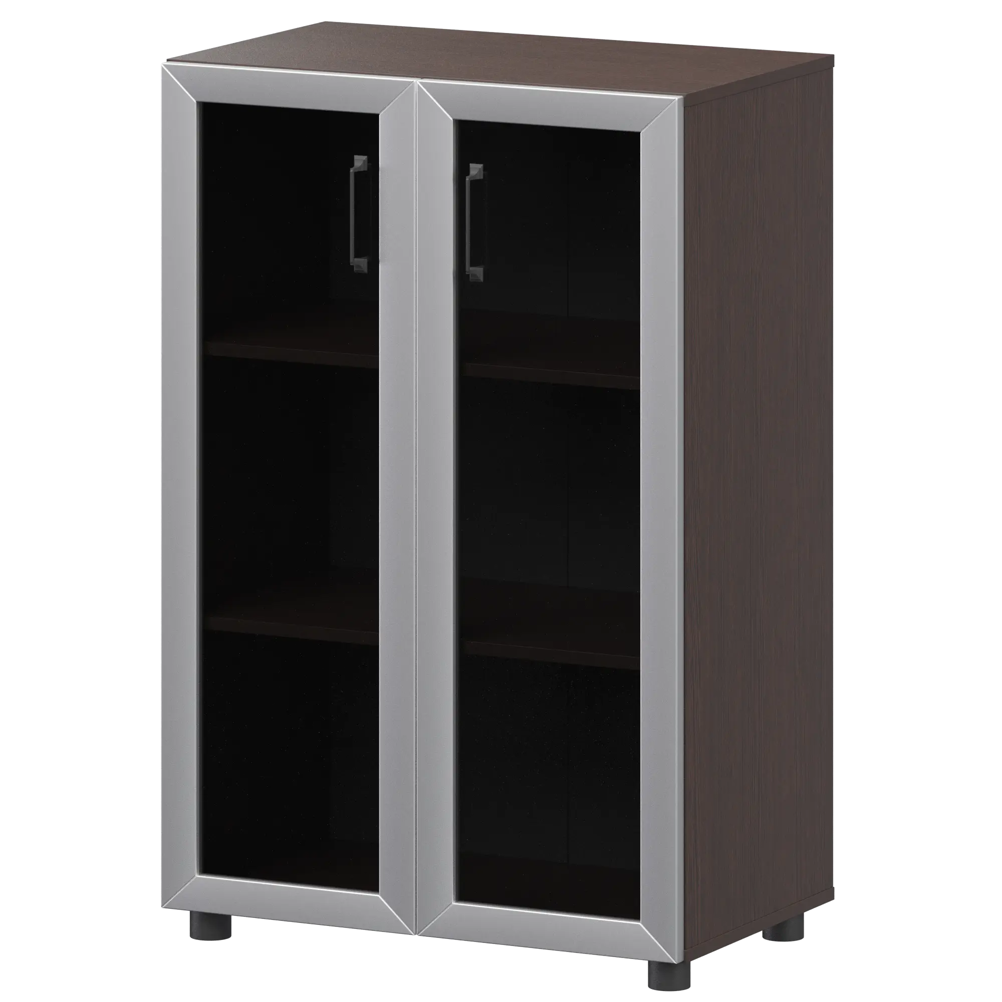 Стеллаж средний закрытый со стеклянными фасадами в алюминиевой раме К-933,К-945,КФ-945 Дуб венге 720x420x1215 Приоритет