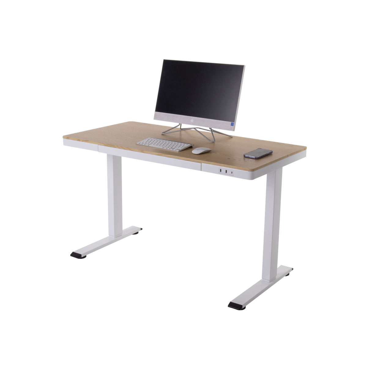 Стол с электроприводом LA-T33-E4A (МДФ молочный дуб, белое), высота 70-120 см, столешница 140*70 см