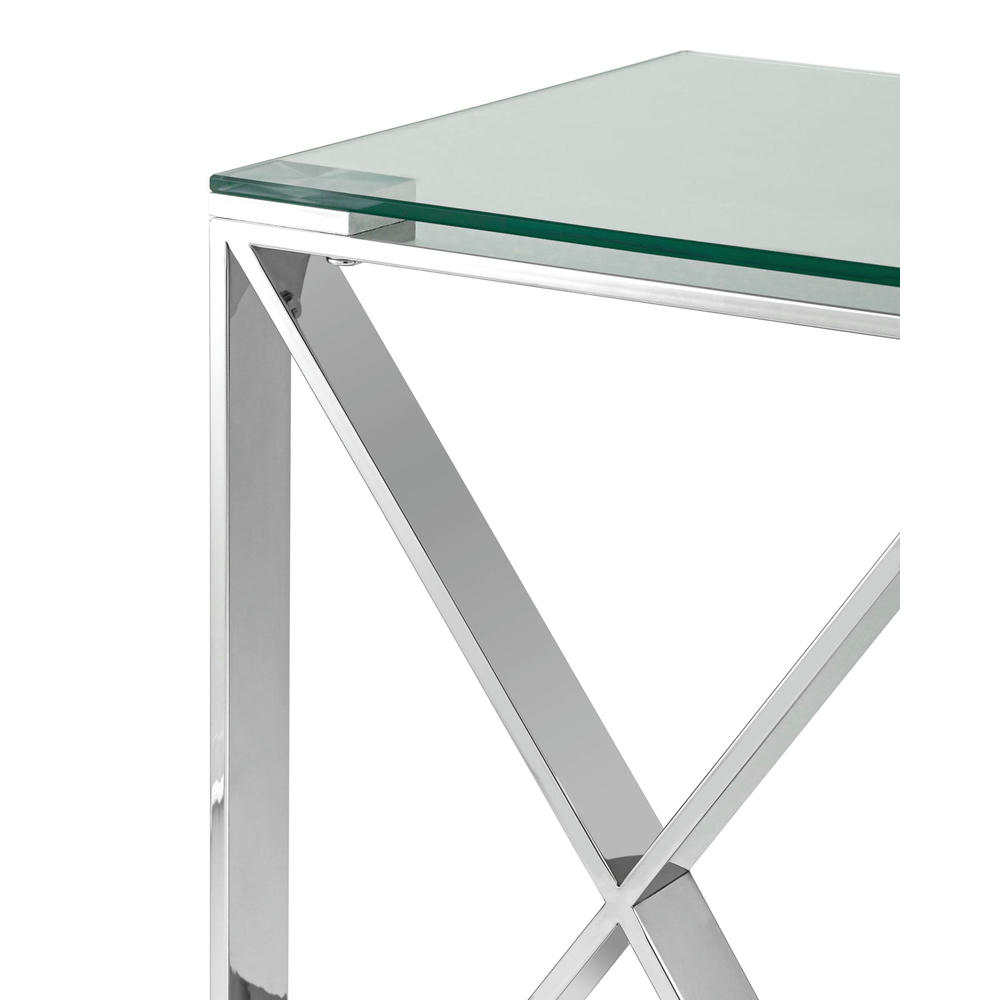 Журнальный стол КРОСС благодаря оригинальной форме станет ярким дизайнерским акцентом в интерьере. Каркас стола изготовлен из нержавеющей стали, столешница - закаленное стекло.